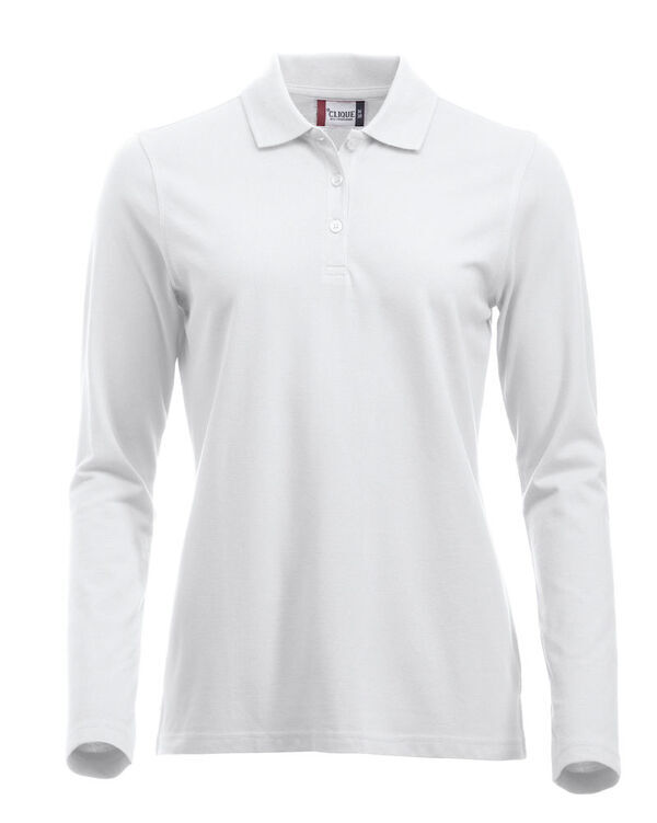 Polo manches longues en maille piquée femme. Patte de boutonnage 3 boutons ton sur ton. Manches longues. Poignets en bord-côte. Fentes d'aisance latérales. Doubles coutures. Bande de propreté. | Maille piquée.