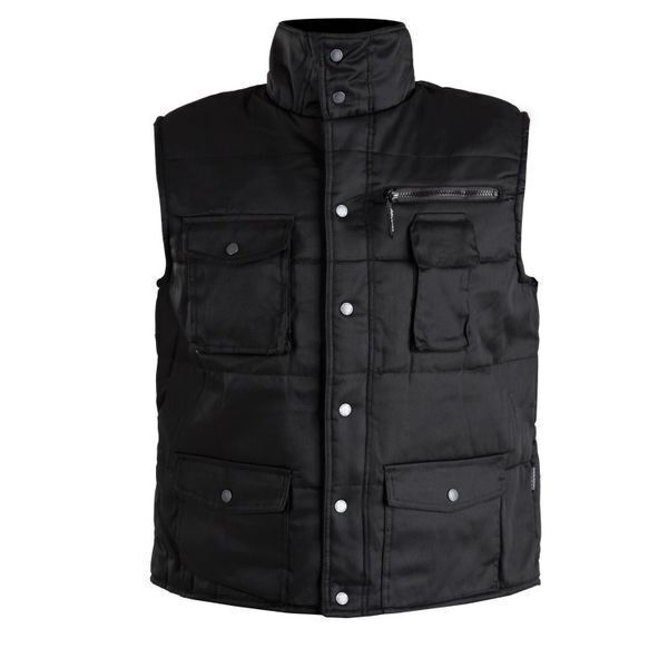 Gilet sans manches. Col montant. Fermeture centrale zippée avec rabat à pression. Poche poitrine droite à soufflet avec bouton-pression. Poche poitrine gauche zippée. Poche téléphone poitrine gauche avec rabat à bande auto-agrippante. 2 poches côtés. 2 surpoches plaquées avec rabat pression. Poche intérieure. Dos rallongé.