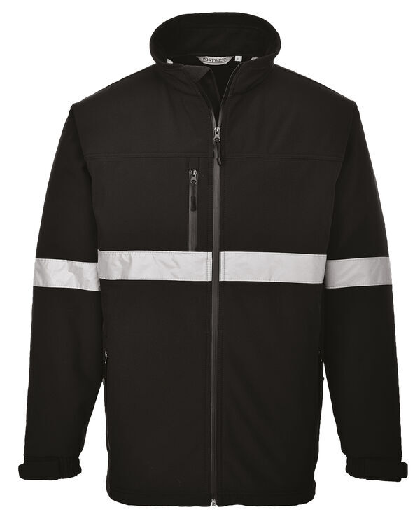 Softshell 3 couches. Col doublé polaire. Fermeture à glissière centrale avec protège-menton. 6 poches, dont une poche Napoléon zippée. Poignets réglables par bandes auto-agrippantes. Intérieur micro polaire. Finition déperlante sur le tissu.
