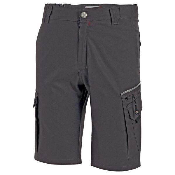 Bermuda. Ceinture avec élastique d'aisance. Nombreuses poches multifonctions dont poche mètre. Détails rétroréfléchissants.