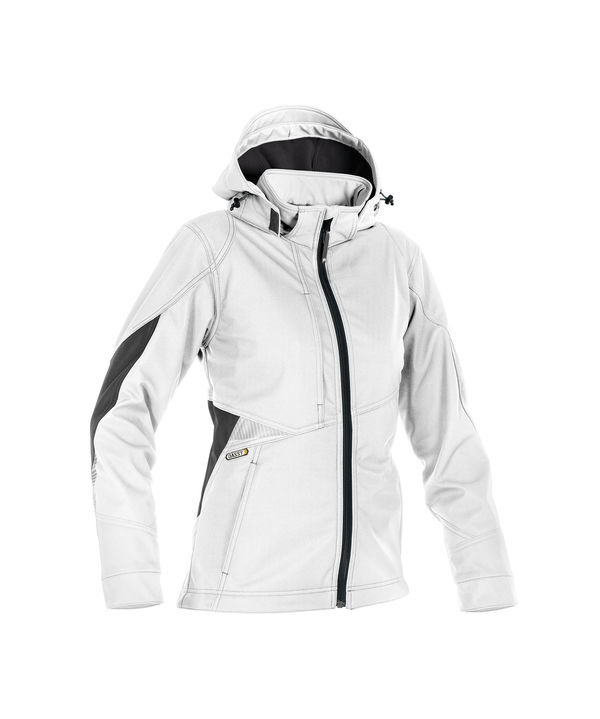 Softshell 3 couches doublée polaire. Capuche amovible et réglable avec cordon élastique. Col montant. Fermeture centrale à glissière YKK® avec protège-menton. Poche poitrine pour téléphone avec passant pour écouteur. 2 poches plaquées zippées. 2 poches intérieures zippées. Poignets coupe-vent en tricot. Renforts coudes Cordura®. Bas de veste réglable avec cordon élastique. Dos rallongé. | Doubles surpiqûres contrastées. Détails rétroréfléchissants. Imperméabilité et respirabilité : 5000/5000
