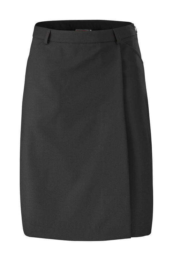 Jupe à panneau. Coupe légèrement évasée sur le bas. Fermeture par zip invisible côté. Ceinture rapportée avec 4 passants. Pinces dos. Fausse poche italienne côté gauche. Vraie poche italienne côté droit. Longueur côté : 53 cm.