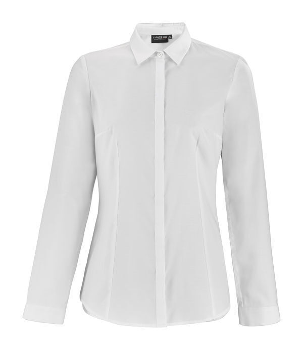 Chemise femme thermorégulante. Découpes poitrine. Pinces tailles et dos. Boutonnage caché sous patte. Manches longues. Poignets boutonnés avec fente. Coupe ajustée.
