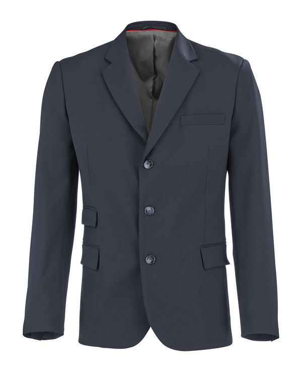 Veste homme. Col tailleur avec boutonnière. Fermeture milieu devant par 3 boutons effet corne et sertis métal. 1 poche poitrine. 3 poches devant, 2 côté droit au porter et 1 côté gauche. Bas de manches avec fente à onglet, 4 boutons effet corne sertis métal. Découpe milieu dos finie par une fente. Veste entièrement doublée avec plis d’aisance et finitions intérieures passepoil rouge. Coupe regular.