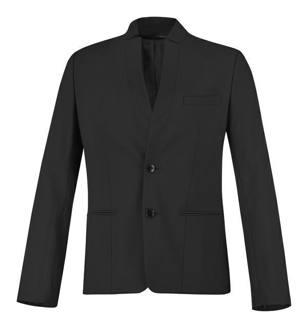 Veste homme. Col inversé. Fermeture milieu devant par 2 boutons. 1 poche poitrine et 2 poches basses passepoilées. Fente milieu dos. 2 poches intérieures. Entièrement doublée. Coupe ajustée.