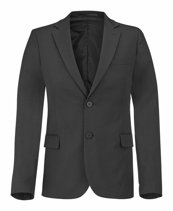 Veste homme. Col tailleur. Fermeture 2 boutons. Poche poitrine passepoilée, poches basses à double passepoil avec rabat. Manches longues, finition 4 boutons sans boutonnière. 3 poches intérieures dont 1 poche ticket. Fente au dos. Doublée entièrement.