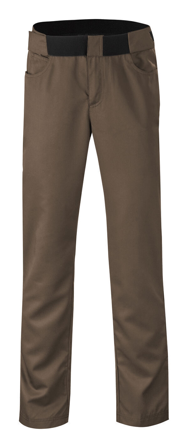 Pantalon mixte 5 poches. Ceinture avec élastique transfert d’humidité. Taille ajustable avec 2 pattes à élastique auto-agrippant à la ceinture. 2 poches cavalières avant avec poche ticket. 2 poches plaquées dos. Bas de jambe réglable sur 3 positions par système de pressions. E.J. : 82 cm.
