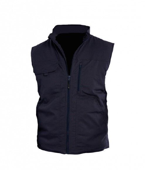 officier. Ouverture milieu devant par zip avec protège-menton. Une poche poitrine zippée et une à rabat côté gauche. 2 poches basses. Dos couvre-reins.