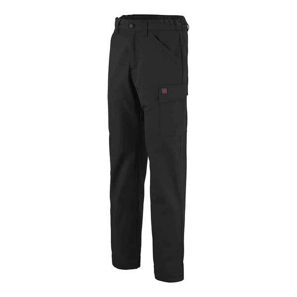 Pantalon, ceinture droite avec passants, élastiquée de côtés et fermée par bouton. Braguette zippée. 2 poches italiennes. Panneau d'aisance à l'entrejambe. Poche cuisse gauche avec soufflet, sous rabat fermé par Velcros® cachés. Poche revolver plaquées au dos. Poche mètre avec bas volant. Pinces jambe dos. Finition bas de jambes par ourlets. Bas de jambes évolutifs. Mercerie tout plastique.