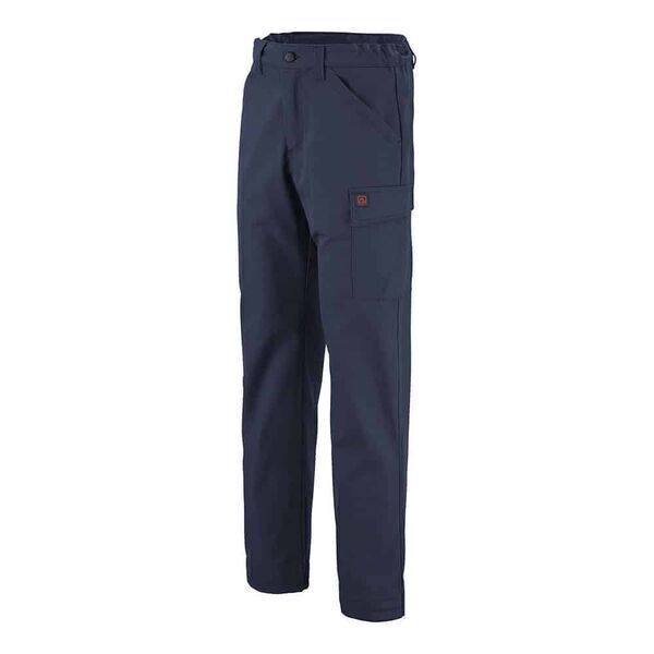 Pantalon, ceinture droite avec passants, élastiquée de côtés et fermée par bouton. Braguette zippée. 2 poches italiennes. Panneau d'aisance à l'entrejambe. Poche cuisse gauche avec soufflet, sous rabat fermé par Velcros® cachés. Poche revolver plaquées au dos. Poche mètre avec bas volant. Pinces jambe dos. Finition bas de jambes par ourlets. Bas de jambes évolutifs. Mercerie tout plastique.