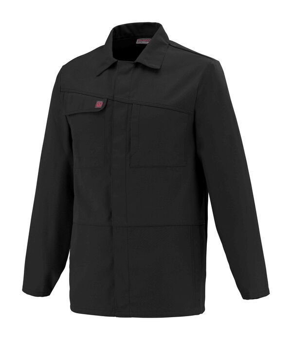 Veste, col transformable. Fermeture milieu devant par pressions cachées. Empiècement devant asymétrique. 2 poches poitrine incrustée sous rabat fermé par Velcro® cachés. 2 poches basses verticales. Empiècement dos asymétrique. Manches longues avec bas de manches réglables par pression.