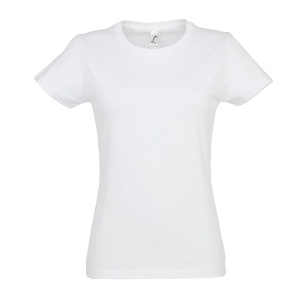 T-shirt femme. Col rond bord-côte avec élasthanne. Bande de propreté au col. Manches courtes. | Structure tubulaire. Coton semi-peigné Ringspun. Coupé cousu.