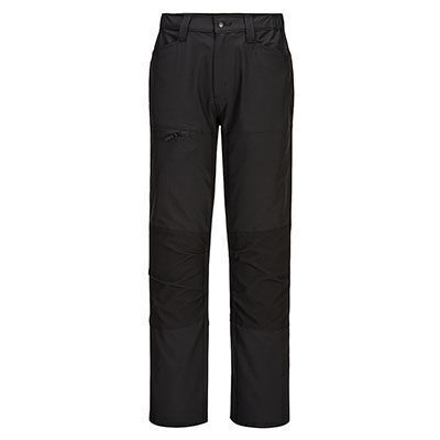 Pantalon stretch. Taille élastiquée. 2 poches italiennes. Poche cuisse fermée par zip. Poche dos à zip. Genoux préformés. Coupe slim.