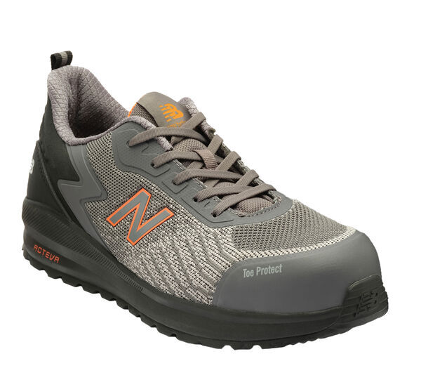 0402F2162A002 Chaussures de sécurité. Tige synthétique tricotée résistante à l'abrasion. Semelle de propreté préformée avec insert confort. Doublure maille respirante. Embout composite 200 J. Intercalaire anti-perforation non métallique. Renfort anti-abrasion TPU sur l’avant. Semelle intermédiaire EVA, technologie New Balance ACTEVA. Semelle externe caoutchouc.
