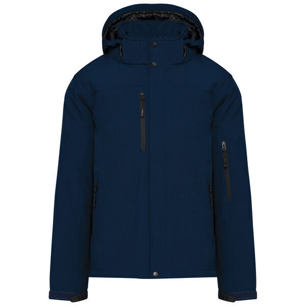 Softshell matelassée 3 couches homme avec capuche amovible et réglable par stoppeur. Fermeture centrale zippée avec rabat pressions. Poche poitrine avec fermeture à glissière. 2 poches basses zippées. Poche zippée sur manche gauche. 2 poches intérieurs fermés par bouton-pression. Bas de manche réglable avec bande auto-agrippante. Liseré réfléchissant au dos. | Imperméabilité et respirabilité : 8000/3000.