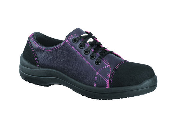Chaussures de sécurité femme basses. Tige cuir souple pleine fleur grainé hydrofuge. Doublure textile tridimensionnel micro-aéré. Embout polycarbonate 200 J. Insert anti-perforation textile composite haute ténacité. Semelle externe Parabolight PU2D. | 0% Métal.