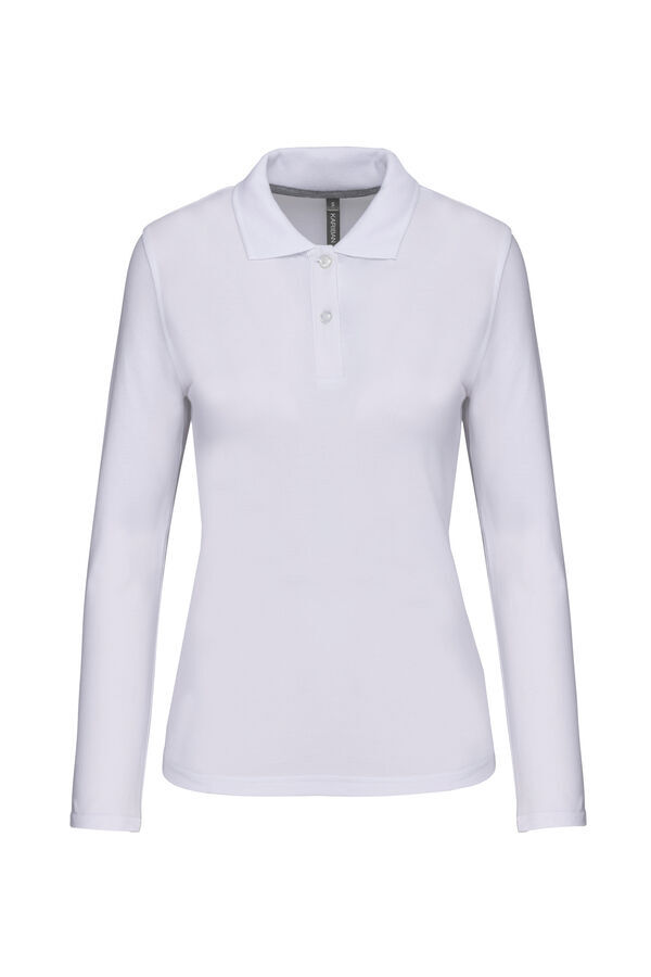 Polo col en bord-côte, patte de boutonnage 3 boutons. Bande de propreté contrastée à l’encolure. Fentes latérales. Manches longues, bas de manche finition en bord-côte. Finition double aiguille bas de vêtement. | Maille piquée.