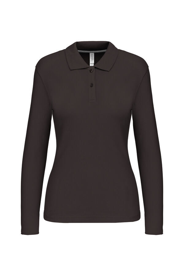 Polo col en bord-côte, patte de boutonnage 3 boutons. Bande de propreté contrastée à l’encolure. Fentes latérales. Manches longues, bas de manche finition en bord-côte. Finition double aiguille bas de vêtement. | Maille piquée.
