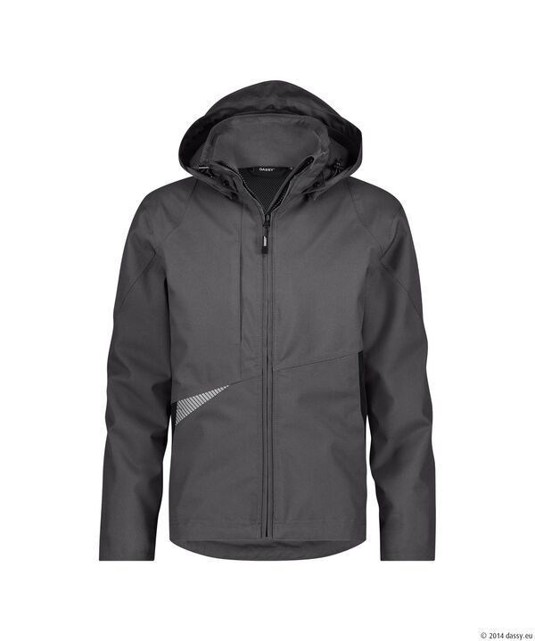 03DASHYPERNEXTH Veste imperméable et coupe vent, doublure mesh 3D. Fermeture zippée centrale avec protège menton. Capuche amovible serrage élastiquée. 2 poches basses et poitrine zippées, poche téléphone et poche intérieure. Poignets réglables avec auto-agrippant et coupe-vent. Bas de veste réglable par cordon élastique de serrage. Dos rallongé. Détails réfléchissants. Coutures doubles et thermocollées.