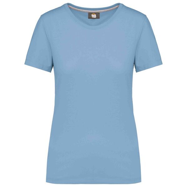 T-shirt femme à traitement antibactérien. Col rond en bord-côte. Bande de propreté contrastée au col. Manches courtes. | Lavage aux enzymes.