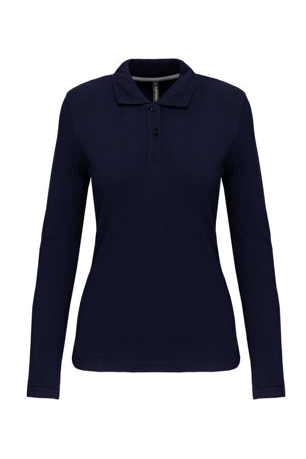 Polo col en bord-côte, patte de boutonnage 3 boutons. Bande de propreté contrastée à l’encolure. Fentes latérales. Manches longues, bas de manche finition