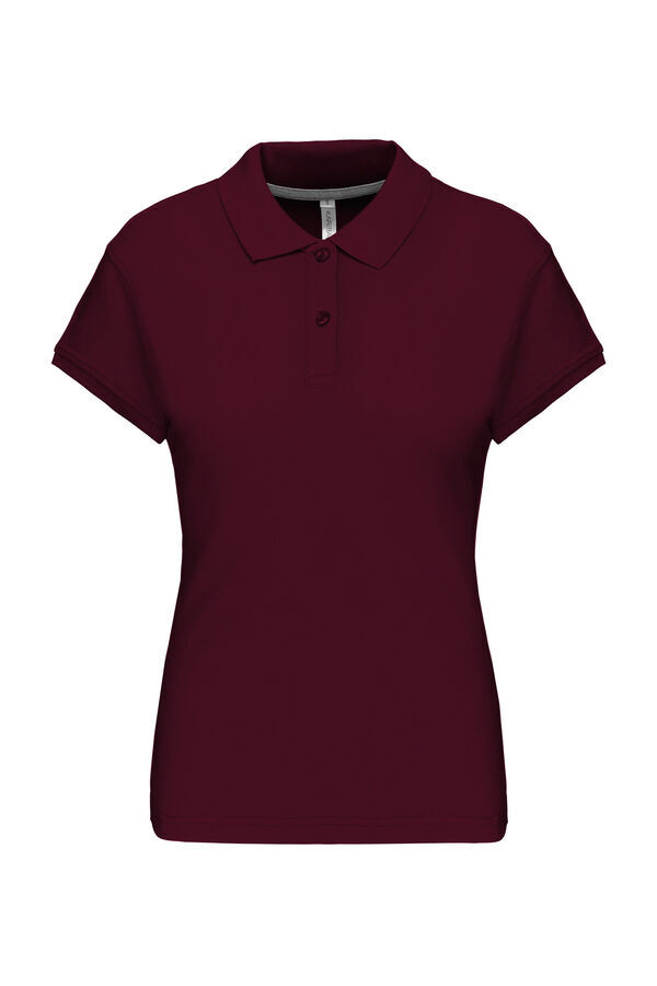 Polo femme col en bord-côte, patte de boutonnage 3 boutons. Bande de propreté contrastée à l’encolure. Fentes latérales. Manches courtes, bas de manche finition en bord-côte. Finition double aiguille bas de vêtement. | Maille piquée.