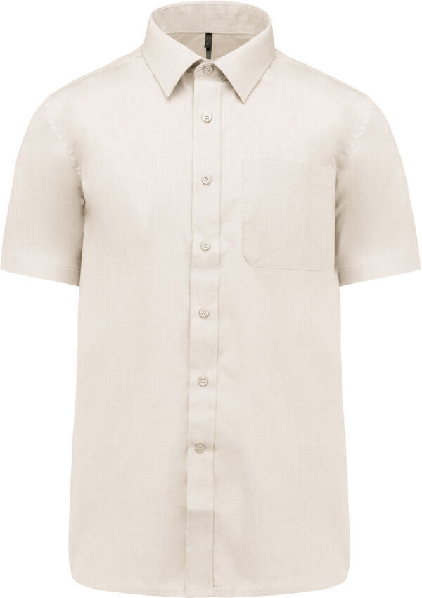 Chemise homme. Col avec pointe de col baleinée. Boutons ton sur ton. Poche poitrine côté gauche à angles arrondis. Empiècement dos double. Manches avec finition ourlet. Bouton de rappel. Bas arrondi. Finition coutures rabattues. Entretien facile.